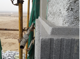 4 粘貼組合出現(xiàn)非整塊時,通過專用切割器按所需要的規(guī)格和形狀現(xiàn)場加工。此舉既有效保證了被切割模塊的幾何尺寸準(zhǔn)確和與原整塊做到企口插接,使模塊組合表面平整,不因有組合縫而降低系統(tǒng)的保溫隔熱性和氣密性并避免了因組合縫隙而造成的“熱橋”。實(shí)現(xiàn)了模塊安裝組合“零損耗”,降低了施工成本,杜絕了施工現(xiàn)場及周邊環(huán)境的“白色污染”。